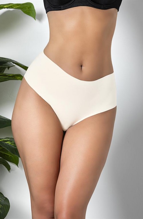 3'LÜ PAKET DİKİŞSİZ, İZ YAPMAZ, LAZER KESİM, YÜKSEK BEL SLİP KÜLOT EKRU (MGP21263)