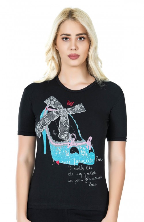 Derya Kurşun Baskılı Kadın Tişört 275