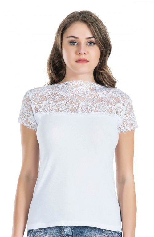 Derya Kurşun Dantel Yaka Yarım Kol Kadın Tişört 232