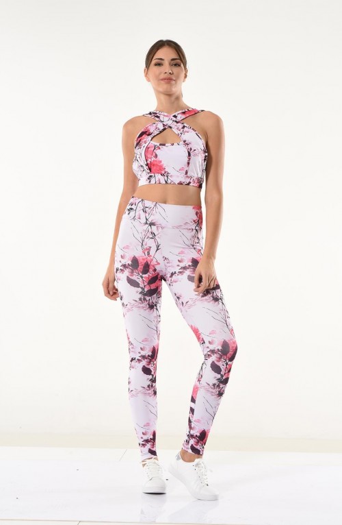 Derya Kurşun Kadın Çiçek Desenli Büstiyer Tayt Takım 530