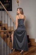 DANTELLİ UZUN YIRTMAÇLI SATEN GECELİK ELBİSE STRİNG TAKIM SİYAH (MGP31512)