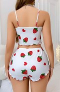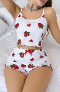 Kadın Beyaz Çilek desenli Şortlu Pijama Takımı 5053
