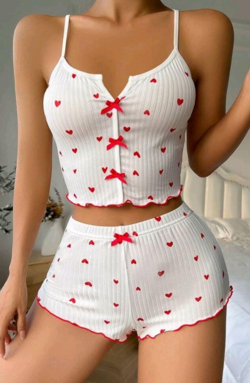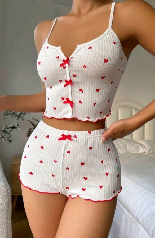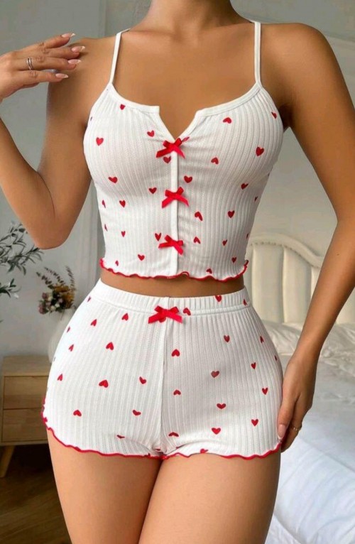 Kadın Beyaz Fiyonk Desenli Seksi Gecelik Takım 5007