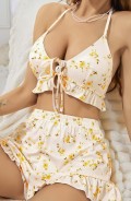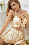 Kadın Çiçekli Ekru Askılı Şortlu Pijama Takım 5017