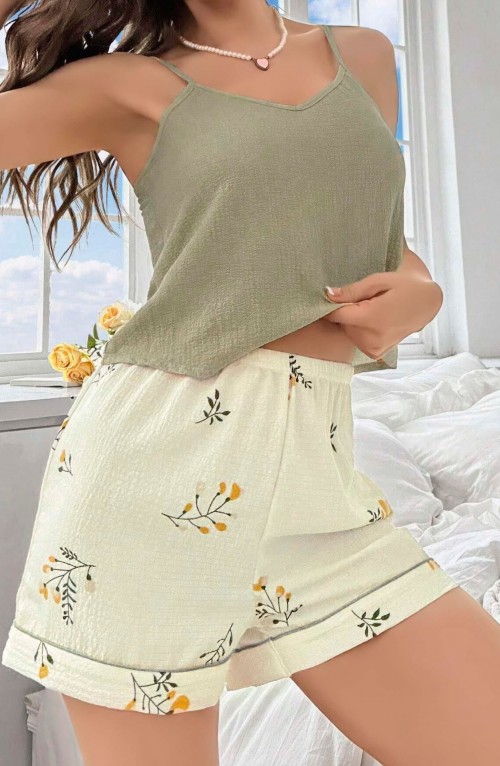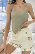 Kadın Ekru Çiçek Baskılı Şortlu Gecelik Pijama Takımı 5099