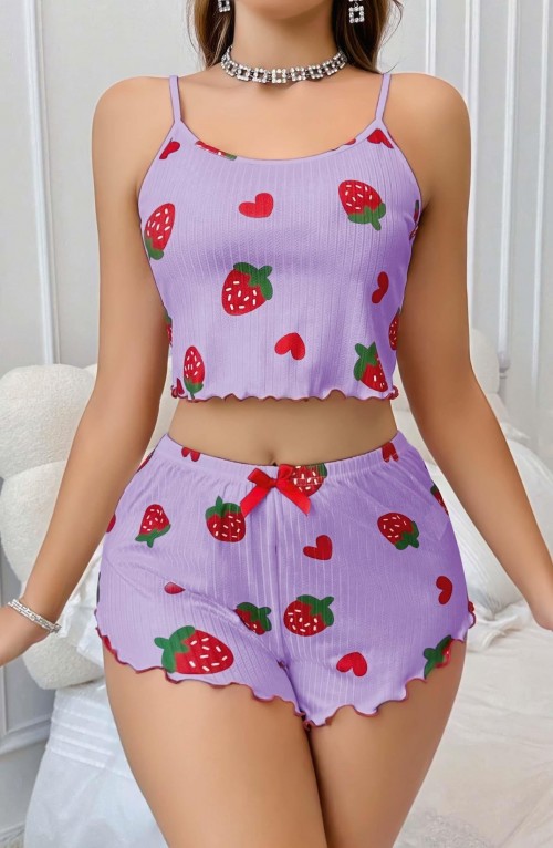 Kadın Mor Çilek desenli Şortlu Pijama Takımı 5061