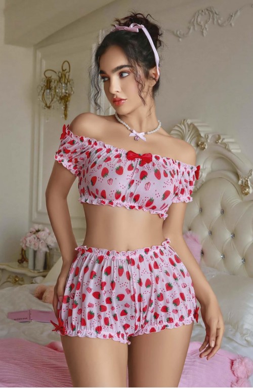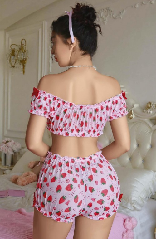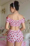 Kadın Pembe Çilek Desenli Fantezi Şort takım 2156