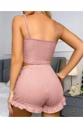 Kadın Pudra Dantel Detaylı Şortlu Gecelik Pijama Takımı 5015