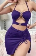 Kadın Mor Fantezi Elbise Önden Büzgü Dekolteli 5083