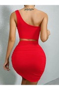 Kadın Tek Omuz Kesim Detaylı Büzgülü Fantezi Elbise 5078