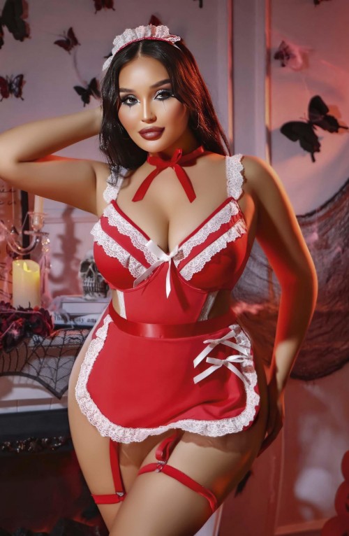 Kadın Büyük Beden Yılbaşı Özel Dantel Detaylı Fantezi Jartiyer Takımı 8012