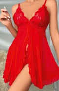 Kadın Transparan Dantel Detaylı Şık Kırmızı Fantezi Gecelik 2099