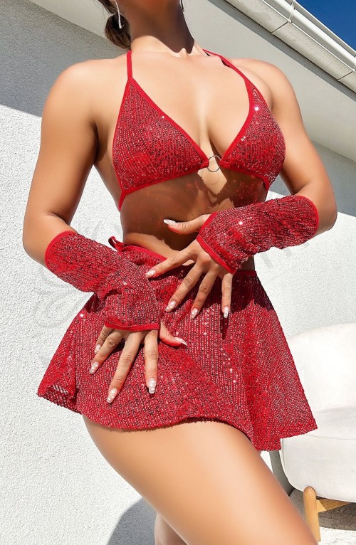 NightLight Kırmızı Parıltılı Eldivenli Etekli Fantazi Takım 3612