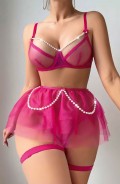 Kadın Fuşya İnci Detaylı Tül Etekli Seksi Fantezi Kostüm 2189