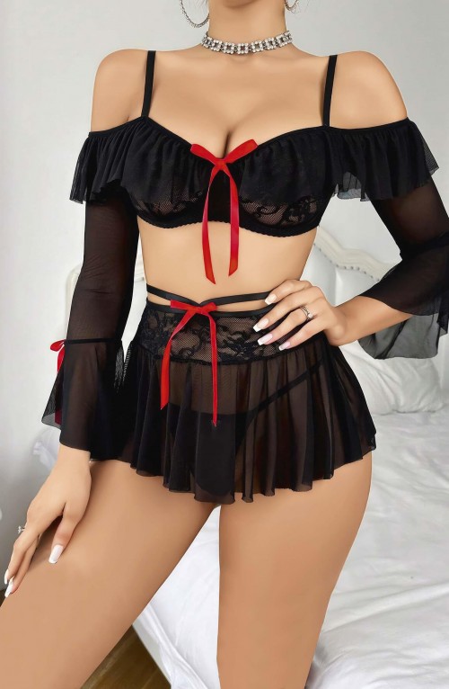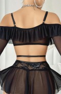 Kadın Siyah Etek Bustiyer Sexy Gecelik Takım 2157