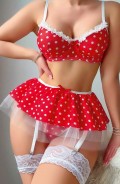Kırmızı Puantiye Etekli Kadın Fantezi Seksi Kostüm 2076