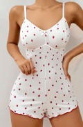 Kadın Beyaz Çilek Baskılı Pijama Tulumu 5127