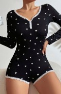 Kadın Siyah Kalp Desenli Pijama Tulumu 5122