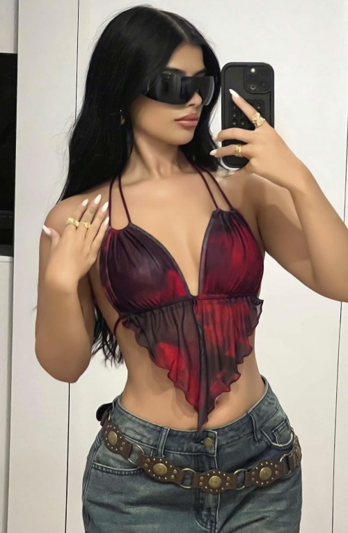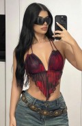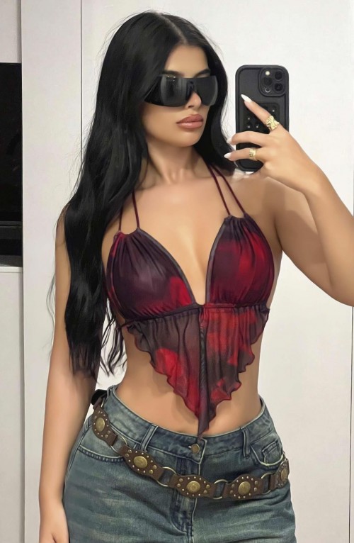 Kadın Kırmızı Siyah Renklerde Önden Üçgen Kesim Detaylı Crop Askılı Önden Bağlama 5092