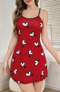 Kadın Kırmızı Beyaz Kalp Desenli Askılı Elbise 5063