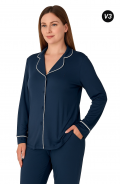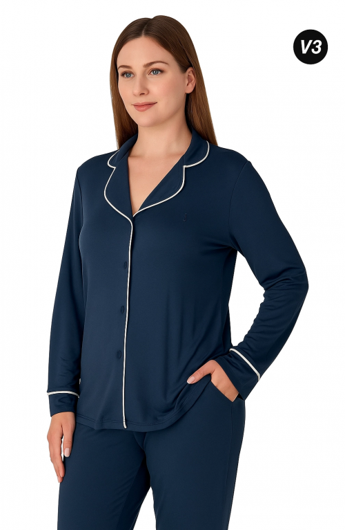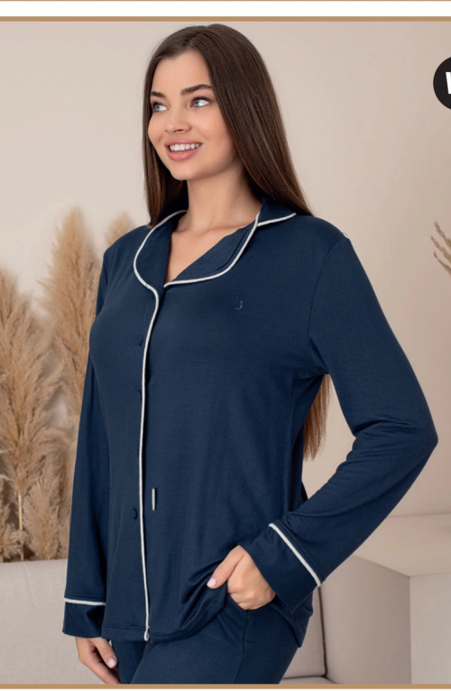Limissi Önden Düğmeli Kadın Pijaması acivert Renk 26611
