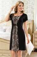 Derya Kurşun Leopar Desenli Yarım Kol Kadın Tunik 905