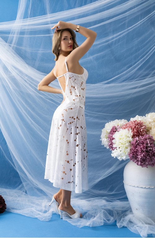 UZUN GECELİK ELBİSE, SLİP KÜLOT TAKIM EKRU (MGP32291)